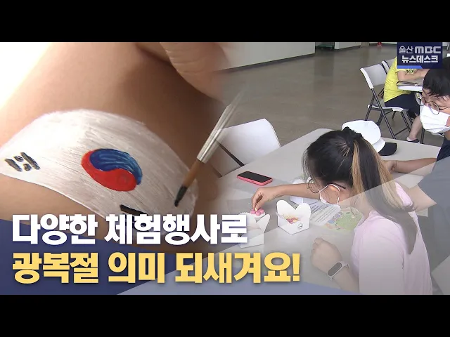 [앵커 ]제77주년 광복절을 기념해 울산에서도 다채로운 체험 행사가 열렸습니다. 그동안은 코로나19가 확산되면서 광복절을 기념할만한 이렇다할 시민 참여 행사가 없었는데요. 이번에는 3년 만에 다양한 행사가 마련됐습니다. 이용주 기자가 전합니다. [리포트]연분홍색 노란색 재료를 손에 쥐고 꽃잎과 꽃심을 만들어 봅...