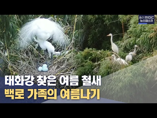 [앵커]대표적인 여름 철새인 백로가 우리나라에 찾아왔습니다. 봄에 알을 깨고 나온 새끼를 돌보며 먹이활동을 하느라 분주한 여름 진객 백로를 카메라에 담았습니다.최지호 기자가 보도합니다. [리포트] 울창한 대나무숲 위에 흰 깃털 옷을 입은 백로들이 무리지어 앉아 있습니다. 아침 일찍 먹이를 구해와 둥지에 있는 새...