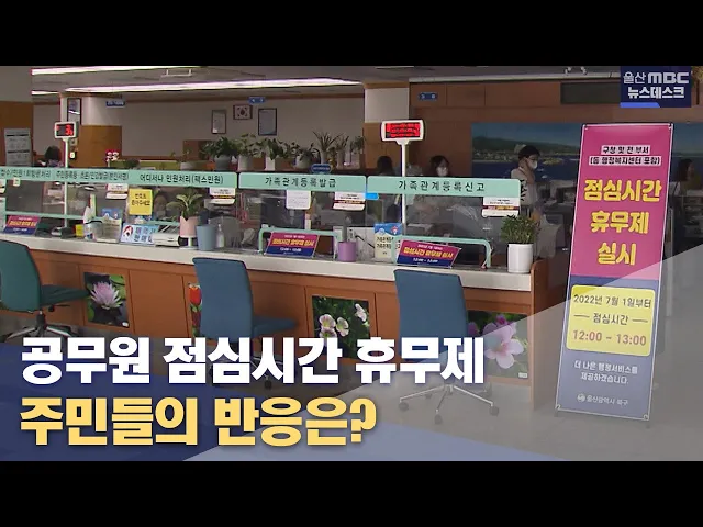 [앵커] 북구가 울산에서는 처음으로 낮 12시부터 1시까지 대면 업무를 중단하는 점심시간 휴무제를 오늘(7/1)부터 시작했습니다. 이 사실을 모르고 찾아온 주민들 가운데에는 휴무제의 취지를 이해하는 이들도 있었지만 기존대로 일을 해달라는 의견도 적지 않았습니다. 이용주 기자입니다. [리포트] 점심시간 북구청 민원...