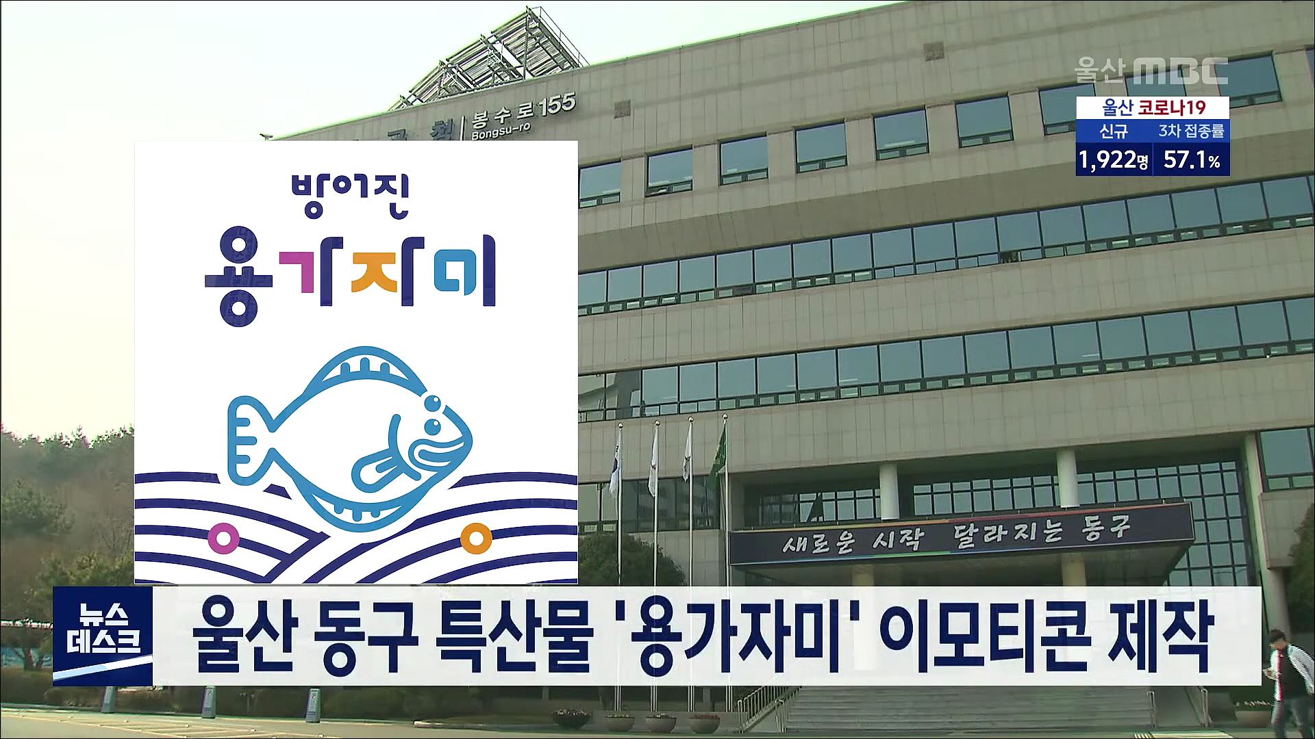 울산 동구청이 지역 특산물인 방어진 용가자미 캐릭터를 활용한 이모티콘을 제작합니다. 동구청은 오는 6월까지 이모티콘 16종을 제작해 동구 소식을 받아보는 SNS 구독자에게 배포할 예정입니다. 동구 방어진항에서 잡히는 전체 가자미의 90%를 차지하는 용가자미는 2019년 2천907톤, 2020년엔 3천297톤이 위판장에서 거래...