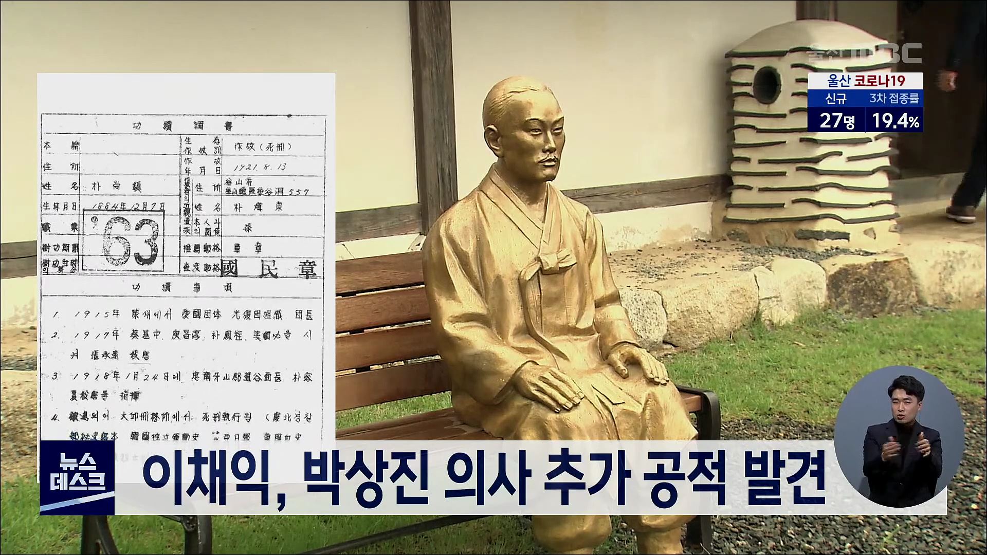 울산의 대표 독립운동가인 고헌 박상진 의사의 과거 공적조서와 신청 당시 자료가 공개됐습니다. 이채익 국회의원이 확보한 국가보훈처와 국사편찬위원회 자료에 따르면 박상진 의사의 1963년 공적조서에는 광복회 조직, 친일부호 장승원 살해 등 공적 일부만 적혀 있는 것으로 확인됐습니다. 이 의원은 공적 가운데 누락된...