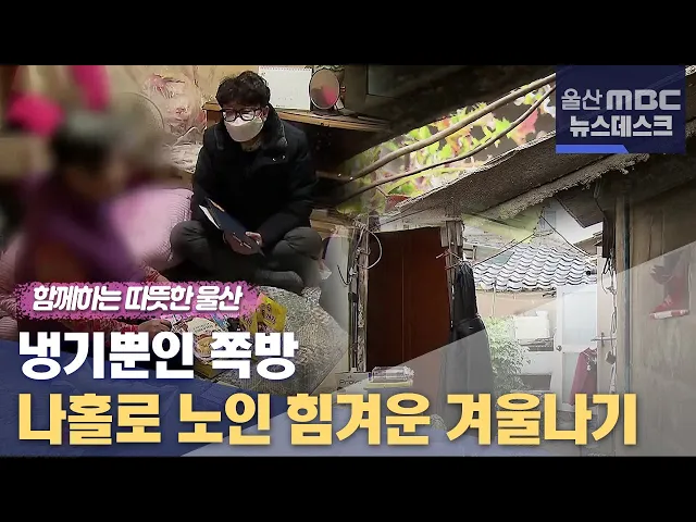 ◀ANC▶연말을 맞아 도움의 손길이 필요한 이웃과나눔 실천의 현장을 소개하는 연속 기획입니다.겨울은 나홀로 지내는 어르신들에게특히 힘든 계절입니다.울산에도 쪽방 등 열악한 주거 환경에서거주하는 어르신들이 적지 않은데,올해는 유난히 추위가 심할 것으로 예보돼겨울철 난방 걱정이 크다고 합니다.정인곤 기자.◀...