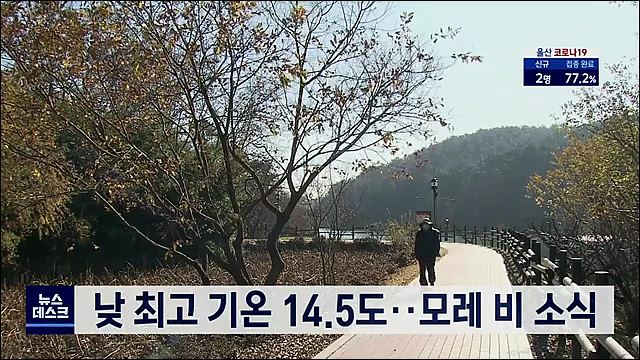 오늘(11/29) 울산지방은 닷새째 건조주의보가 발효중인 가운데 아침 최저 2.4도로 시작해낮 최고 기온이 17.8도까지 올라 일교차 큰 날씨를 보였습니다.내일은 아침부터 오후까지 5~40mm의 비가 내리겠고, 모레부터는 아침 기온이 1도까지 떨어져 강한 추위가 찾아오겠습니다.울산기상대는 건조한 날씨와 함께 바람도 강하...