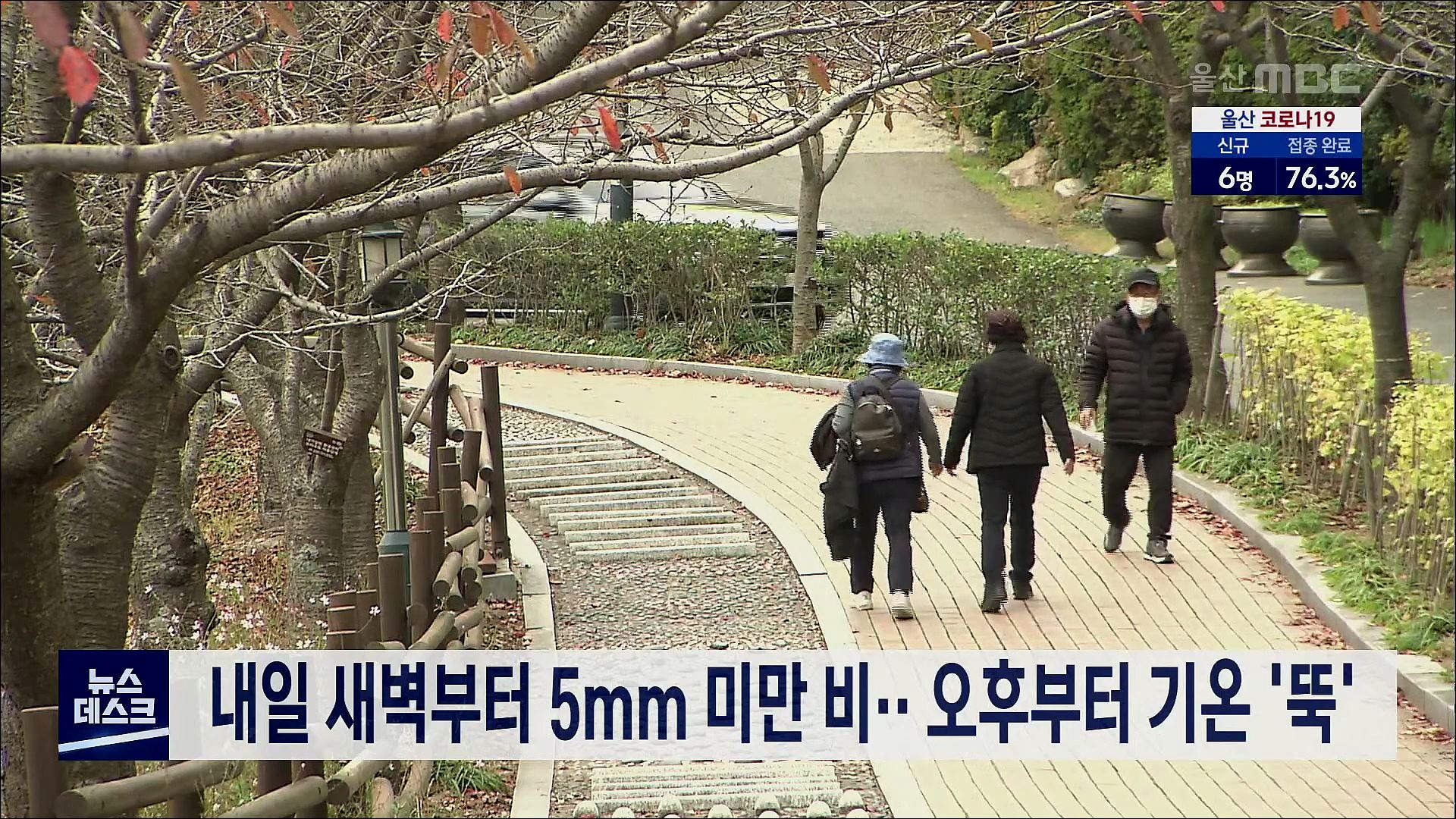 휴일인 오늘(11/21) 울산지방은 대체로 흐린 가운데 낮 최고 기온은 19.1도를 기록했습니다. 내일 새벽부터 아침 사이에는 5mm 미만의 비가 내리겠으며, 아침 최저 10도, 낮 최고 11도로 일교차가 크지 않겠습니다. 울산기상대는 내일 오후부터 기온이 떨어져 춥겠다며 건강 관리에 주의를 당부했습니다. //