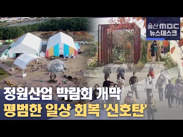 ◀ANC▶[태화강 국가정원에서 진행되는오늘 뉴스데스크 첫번째 순서입니다.]오늘(11/2) 개막한 2021 대한민국 정원산업박람회가 방문객들의 큰 호응을 얻고 있습니다.정부의 단계적 일상회복 이후 울산에서 처음 열린 대형 행사인데 평범한 일상으로 한걸음 다가가는 신호탄이 되고 있습니다.정인곤 기자.◀END▶◀VCR▶...