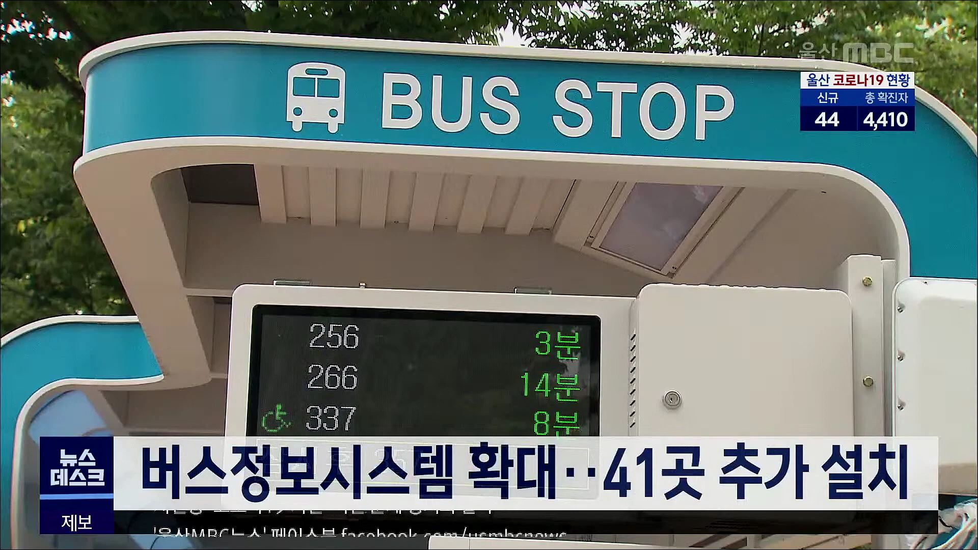 울산시는 버스 운행 현황 등을 알려주는 버스정보시스템 확대 사업을 마무리했습니다. 지역 버스 정류소 41곳에 버스정보 단말기를 추가로 설치했으며, 노후된 단말기 24대는 교체됐습니다. 새로 설치된 단말기는 버스 운행 현황와 함께 날씨와 미세먼지 등 환경 정보도 안내하며, 장애인을 위한 음성 서비스도 제공됩니다....