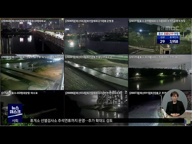 ◀ANC▶그러면 이번에는 울산 전 지역의 태풍 상황을 재난 CCTV를 연결해 자세히 확인해 보겠습니다.스튜디오에 유희정 기자 나와 있습니다.유 기자. 지금 울산 전 지역에 강한 바람과 함께 많은 비가 오고 있는데요. 먼저 태화강 상황부터 전해 주시죠. ◀기 자▶네. 울산시에서 관리하는 재난과 홍수 상황 실시간 CCTV를 ...