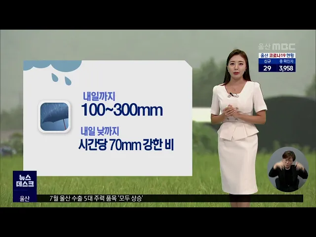 오늘(8/22) 울산은 가끔 구름 많은 가운데 낮 최고 기온은 31도를 기록했습니다. 울산도 내일부터 12호 태풍 오마이스의 영향권에 들며 비가 내리기 시작해 모레까지 100~300mm의 많은 비가 예상됩니다. 이번 비는 주 후반까지 내릴 것으로 예보돼 각종 시설물 피해에 각별한 주의가 필요합니다.//