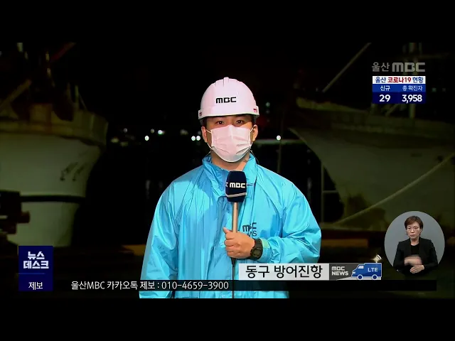 ◀ANC▶제12호 태풍 '오마이스'가 북상하면서 울산에 많은 비가 내리고 있습니다. 내일까지 최대 300mm 비가 쏟아질 것으로 예상됩니다. 이번 태풍은 울산 인근을 관통할 것으로 보여 긴장감이 높아지고 있습니다. 현장에 나가 있는 취재기자 연결해 보겠습니다.정인곤 기자. ◀END▶ ◀S U▶네, 저는 지금 동구 방어진항...