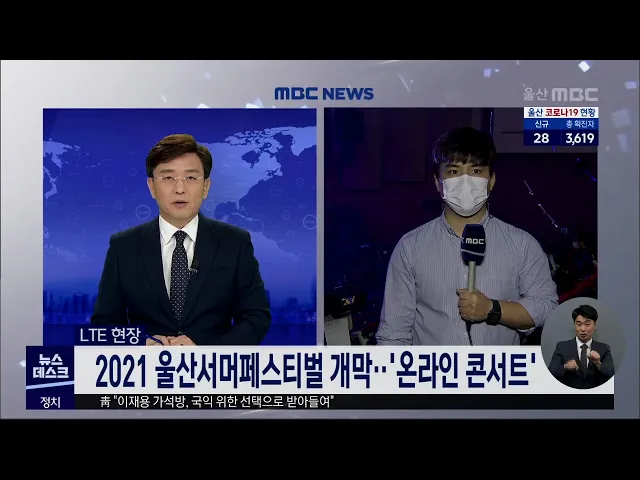◀ANC▶울산MBC가 주최하는2021 울산서머페스티벌의 막이 올랐습니다.올해 공연은 코로나19 확산 우려로 비대면 온라인 방식으로 공연이 진행됩니다.첫날 공연인 '청춘라이브'가 진행되고 있는데요.현장에 나가있는 취재기자 연결하겠습니다. 정인곤 기자. ◀END▶ ◀S U▶네, 저는 첫날의 막이 오른 울산 서머페스티벌 공...