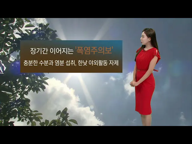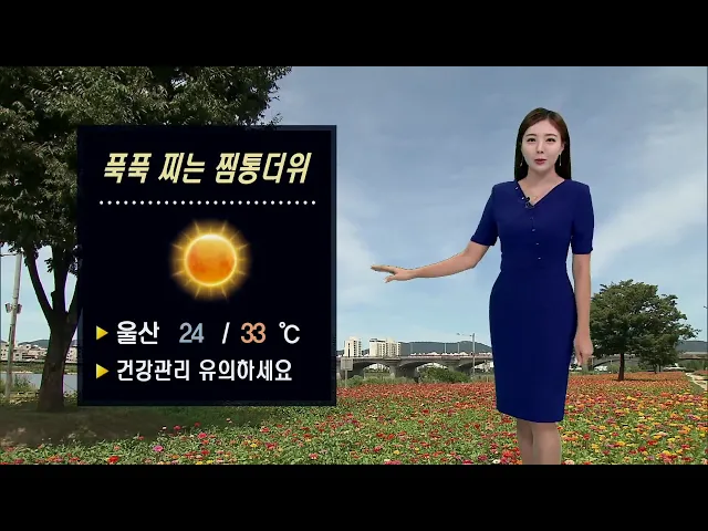 [울산 11일째 폭염주의보.. 온열질환 주의]1) 오늘도 낮 동안 찜통더위가 이어지겠습니다. 여전히 전국적으로 폭염특보가 발효 중인 가운데 울산은 11일째 폭염주의보가 이어지고 있는데요. 오늘 낮 기온은 31도까지 오르면서 어제와 비슷한 기온이 예상됩니다.2) 장기간 무더위가 이어지면서 곳곳에 폭염으로 인한 피해가 ...