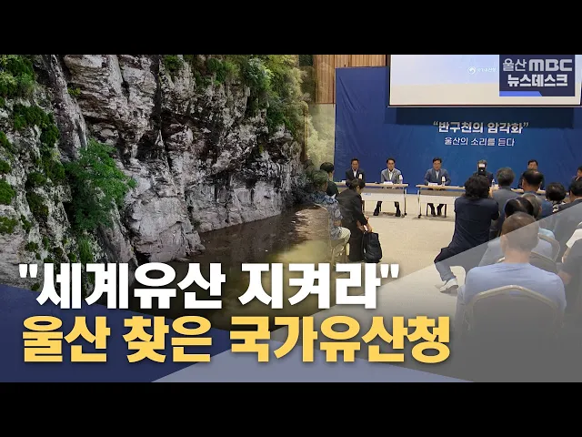 [앵커]국가유산청이 오늘 울산을 찾아 시민들과 세계유산인 '반구천의 암각화' 보존 방안을 논의했습니다. 시민들은 세계유산에 등재된 만큼 수십 년째 제자리에 머물고 있는 암각화 보존 문제가 이제는 해결되어야 한다며 목소리를 높였습니다. 정인곤 기자 [리포트]지난달 내린 폭우로 지금도 물속에 잠겨있는 유네스코 ...