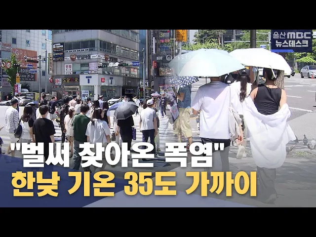 닷새째 폭염특보가 이어지고 있는 울산지역은 오늘(7/1)도 낮 최고기온이 33.6도까지 오르며 무더운 날씨를 보였습니다. 찜통더위는 밤까지 이어져 최저기온이 25도 아래로 내려가지 않는 열대야 현상도 예상됩니다. 울산기상대는 이번 주 내내 한낮 기온 35도 안팎의 무더위가 이어지겠다며 야외 활동 자제 등 온열질환에 ...