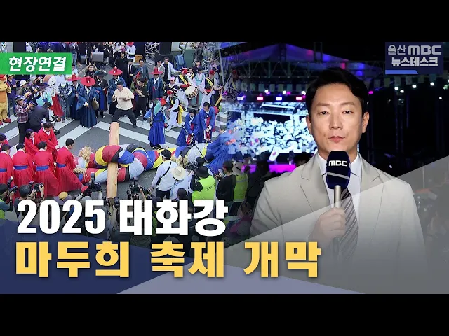 [앵커]울산 태화강 마두희 축제가 오늘부터 사흘동안 태화강변과 중구 원도심 일대에서 펼쳐집니다. 오늘 울산MBC 뉴스데스크는 마두희 축제 현장에서 전해드리겠습니다. 먼저 현장 분위기는 어떤지 연결해 보겠습니다. 최지호 기자 비가 내리고 있는데 축제 분위기는 어떤가요. [기자]네, 저는 지금 태화강 마두희 축제가 ...