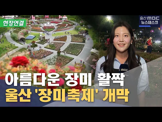 울산대공원에서 오늘(5/21)부터 닷새 동안 3백만 송이의 장미를 즐길 수 있는 장미축제가 열립니다. 전 세계 265종의 장미를 즐길 수 있는 이번 축제에서는 다양한 음악 공연과 장미를 활용한 체험 행사도 즐길 수 있습니다. 오늘(5/21) 오후 7시 개막식에서는 퍼레이드, 초대형 장미 조형물 점등식, 불꽃 쇼 등이 진행될 ...