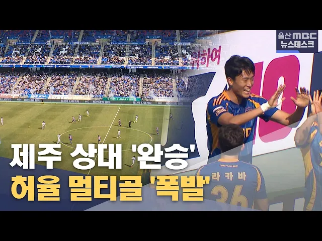 [앵 커] 오는 6월 울산이 K리그를 대표해 참가하는 피파 클럽월드컵 트로피가 울산 팬들 앞에 모습을 드러냈습니다. 트로피의 기운을 받은 울산은 허율의 멀티골에 힘입어 제주를 2-0으로 꺾고 리그 2위에 안착했습니다. 정인곤 기자 [리포트] 울산과 제주의 홈경기 시작 두 시간 전부터 축구팬들이 번쩍이는 트로피 앞에 ...