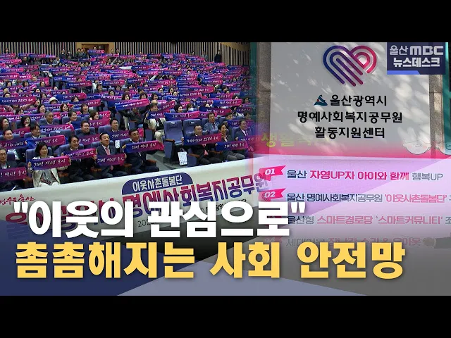 [앵커]복지 사각지대를 해소하기 위한 이웃사촌돌봄단이 오늘(10/27) 출범했습니다. 행정이 놓치기 쉬운 위기 신호를 이웃들이 직접 살피는 울산형 사회 안전망을 촘촘하게 구축하는 사업입니다. 최지호 기자. [리포트]울산에 사는 자부심을 높이는 '울부심' 사업은 울산시가 추진하는 생활밀착형 정책입니다. 지난해 교통...