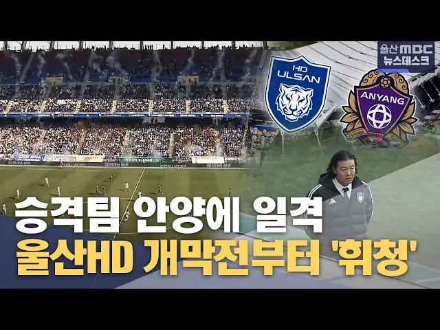 [앵 커] 프로축구 울산이 오늘(2/16) 11개월의 K리그 대장정을 시작하는 개막전을 치뤘습니다. 상대는 K리그2에서 승격한 FC안양이었는데요. 답답한 경기력을 보인 울산은 경기 종료 직전 골까지 헌납하며 개막전부터 패배를 기록했습니다. 정인곤 기자 [리포트] 울산의 개막전이 열린 울산문수축구경기장. 경기 시작 2시간...