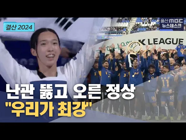 [ 앵 커 ]올 한 해를 되돌아보는 연말 기획 순서입니다. 오늘은 어려운 상황을 극복하고 정상에 올라 시민들을 울고 웃게 했던 울산의 스포츠를 되돌아봤습니다. 정인곤 기자.[ 리포트 ]리그 3연패와 함께 통산 5번째 리그 우승을 달성한 프로축구 울산HD. 하지만 울산의 올 시즌은 순탄치 않았습니다. 주축 선수들이 입대...
