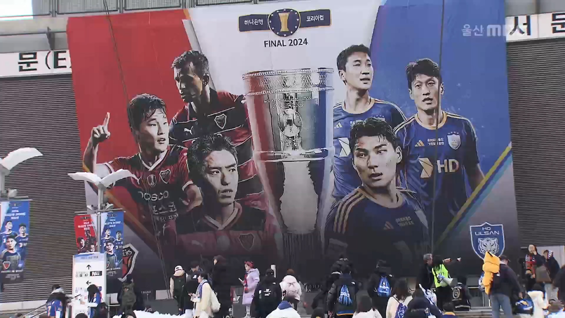 프로축구 울산 HD가 내일 서울 상암 월드컵 경기장에서 동해안 라이벌 포항을 상대로 코리아컵 결승전을 치릅니다. 올 시즌 K리그에서 포항과 4차례 맞대결을 펼친 울산은 3승 1패로 포항에 우위를 점하고 있습니다. 울산은 코리아컵에서 우승한다면 7년 만에 코리아컵 탈환과 함께 구단 창단 이후 처음으로 두 개의 우승컵...