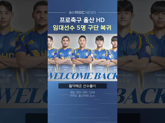 프로축구 울산 HD가 임대선수 5명의 복귀를 시작으로 전력 보강에 박차를 가하고 있습니다.울산은 공격수 야고를 비롯해 이규성과 심상민 등 해외와 국내 리그에 임대 이적해 활약해온 선수들이 다시 울산 소속으로 복귀했다고 밝혔습니다.김현석 감독 체제에서 선수진 보강을 시작한 울산은 오는 6일 아랍에미리트 알 아인...