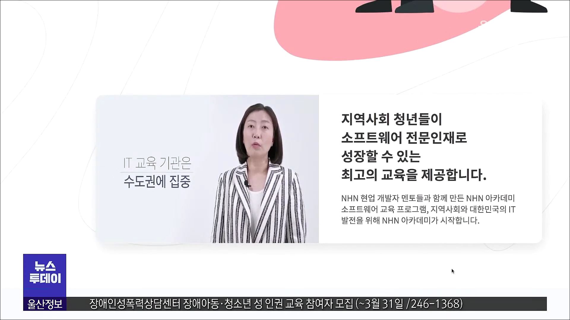 ◀ANC▶ IT 인재를 전문적으로 육성하는 NHN 아카데미가 전국에서 처음으로 김해에 문을 열었습니다. 지역에서 IT 전문 인재를 길러 지역 기업에 취업시키는 선순환 구조를 만드는 것이 목표입니다. 문철진 기자! ◀END▶ ◀VCR▶ 김해에 데이터센터를 짓고 있는 글로벌 정보통신기업 NHN이 NHN 아카데미를 경남에 열었...