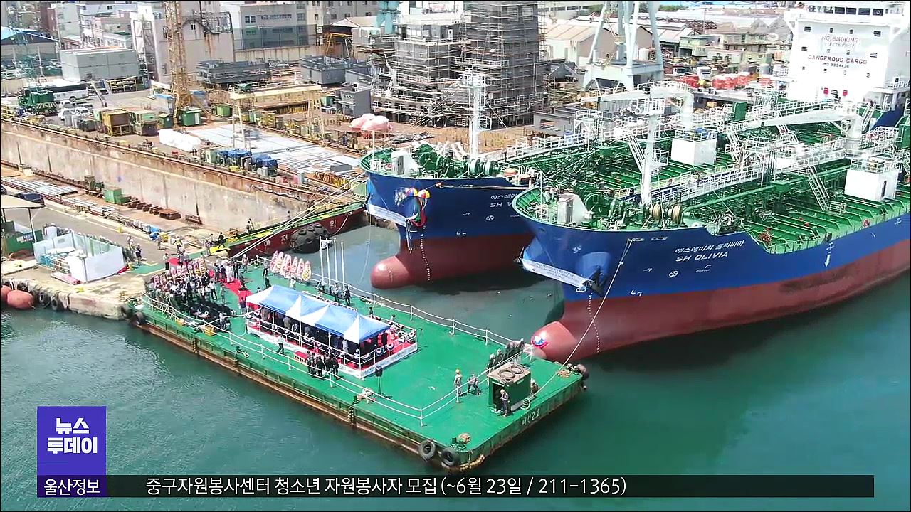 [앵커] 부산에서 향토 조선소에서 선박을 만들어 향토 해운사에 인도하는 행사가 있었습니다. 부산지역 해운사와 조선소, 금융권이 협력하면서 , 3박자가 맞아 떨어진 성과라는 평가가 나오고 있습니다. 배범호기자가 보도합니다. [리포트]부산의 대표적인 중견 조선소, ‘대선조선’에서 새로 건조한 6천800톤급 특수 석유화...