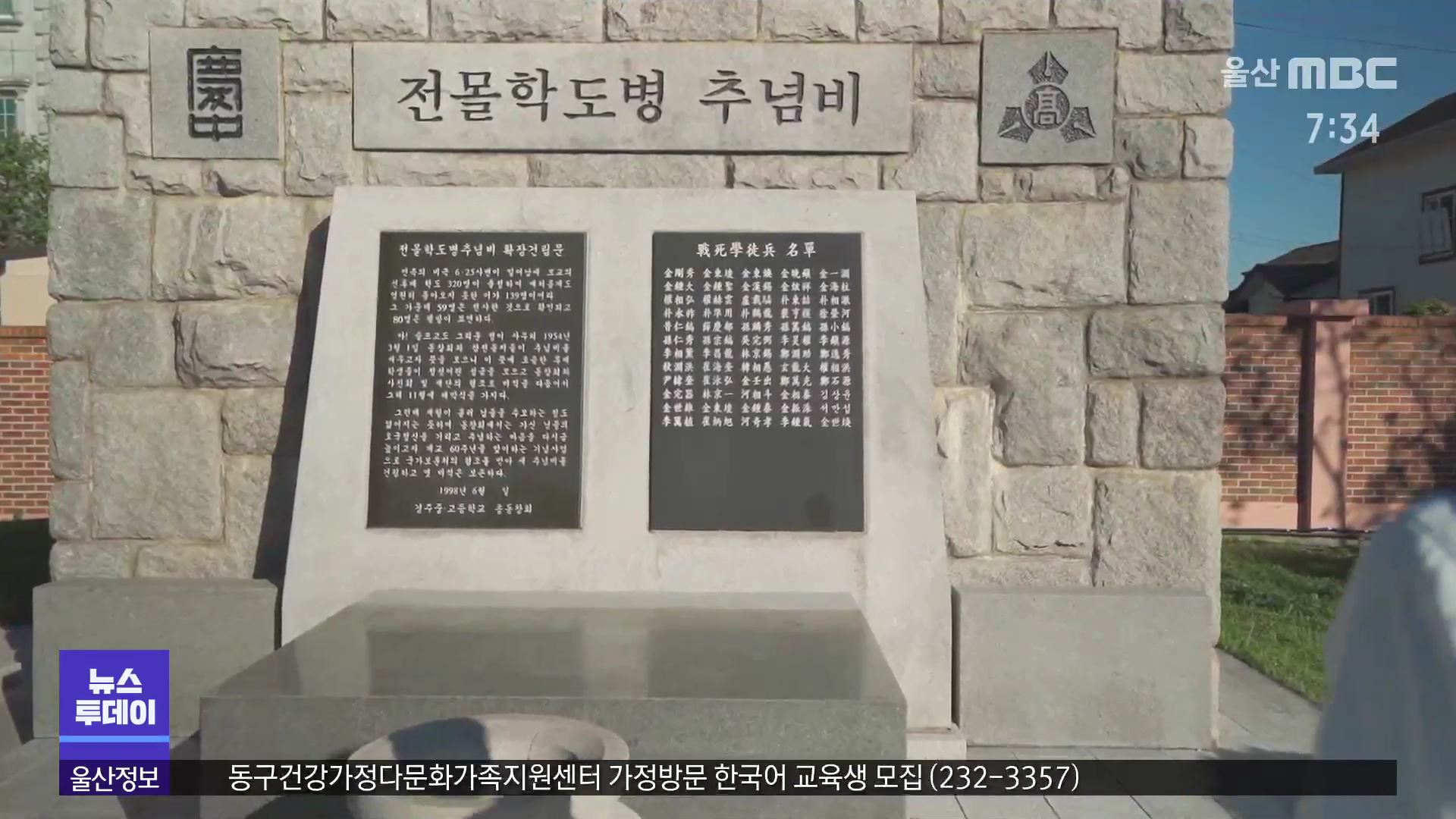 [앵커] 6.25 전쟁에 희생된 학도병을 찾는 노력이 지금도 이어지고 있는데요. 경주에선 70여년만에 학도병 한명의 신원이 확인돼 추념비에 새겨졌습니다. 학도병들의 행적을 직접 둘러보는 학생 체험 프로그램도 이어졌습니다. 임재국 기자가 보도합니다. [리포트] 경주고등학교 학도병 추모비에 새로운 이름이 하나 새겨집...
