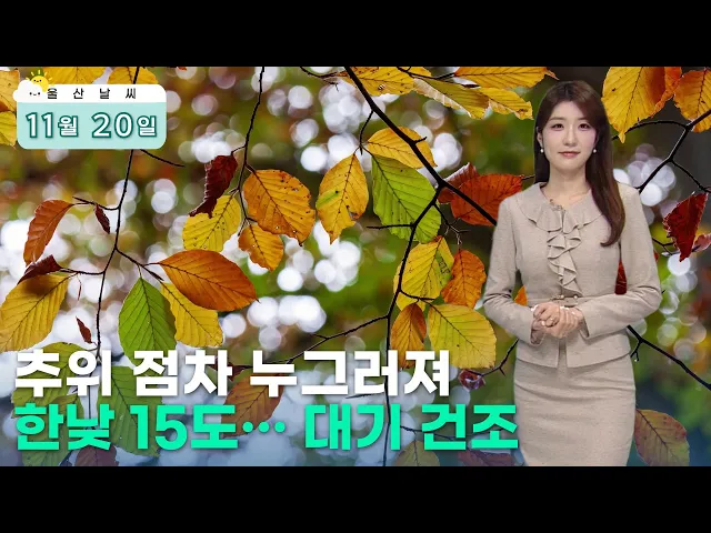 완연한 가을 날씨가 이어지고 있습니다. 화면에 보이는 장면은 지난 주말 양산 통도사의 모습인데요. 울긋불긋 곱게 물든 단풍에 날씨도 크게 춥지 않아서 늦가을의 정취 만끽하기 좋은 날씨가 이어졌습니다. 한 주의 시작인 오늘도 예년 수준을 웃돌며 온화하겠습니다. 낮에도 20도 안팎까지 오르겠는데요. 다만 내륙을 중...