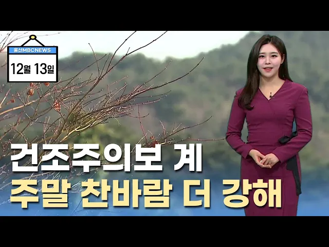 [메마른 대기 '불조심'‥ 찬바람 약간 강해] 차고 건조한 바람에 점점 메말라 가는 대기가 걱정입니다. 울산에는 13일째 건조주의보가 이어지고 있고요. 당분간 별다른 비 소식이 없어 대기는 계속 건조하겠습니다. 큰불이 나지 않도록 작은 불씨도 꼼꼼히 확인해 주셔야겠습니다. 오늘 아침은 영하권을 보이던 어제 아침보...