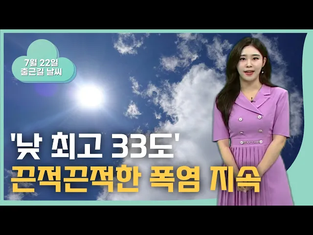 [무더위 기승... 맑다가 오후에 소나기]오늘 구름 사이 파란 하늘 보실 수 있겠습니다.공기질도 깨끗하겠는데요.그렇다고 바깥활동을 즐기기엔, 날이 무척 덥습니다.오늘도 낮 기온은 33도까지 오르면서 찌는 더위가 계속되겠고요.현재 울산 동부에는 폭염주의보가, 서부에는 폭염경보가 내려져있습니다.이렇게 무더위가 ...