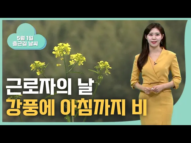 [근로자의 날, 바람 강하고 아침까지 비] 어느덧 달력도 한 장이 넘어갔습니다. 5월의 첫날인 오늘, 약한 비가 날리듯 내리면서 하루가 시작됩니다. 이 비는 아침까지 이어지겠고요. 예상되는 비의 양은 5mm 안팎으로 많지 않겠습니다. 또 오늘 바람도 강하게 불겠습니다. 순간풍속 시속 55km 안팎의 강풍이 예상됩니다. 오...