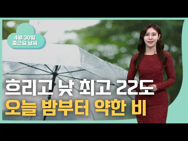 [낮기온 주춤... 오늘 늦은 오후부터 내일까지 최대 30mm 비] 오늘은 하늘이 점차 흐려지면서, 늦은 오후부턴 비가 시작되겠습니다. 적게는 10, 많게는 30mm 정도의 비가 내리겠고요. 비는 내일 오후까지 이어지겠습니다. 바람도 강하게 불겠습니다. 순간적으로 초속 15미터가 넘는 강풍이 예상되고요. 또 내일 새벽부터 낮...