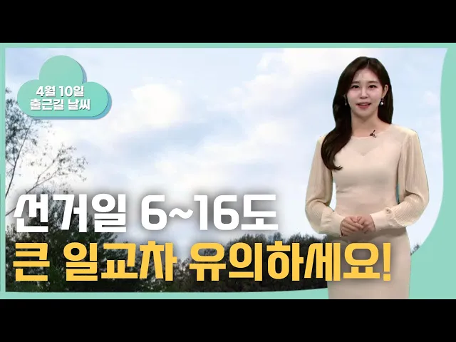 [선거일 6~16도, "큰 일교차 유의하세요!"] 선거일인 오늘, 소중한 한 표 행사하신 후 바깥활동 계획 세우신 분들 많으실 텐데요. 시간대별로 맞는 옷차림을 해주셔야겠습니다. 바람은 잦아들었지만 현재 기온이 한 자릿수까지 뚝 떨어졌는데요. 현재 울산의 아침 기온 6도로 쌀쌀하게 출발하고요. 낮 기온은 16도까지 오르...