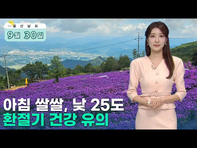 제 뒤로는 보이는 풍경은 가을꽃 아스타 국화가 만개한 거창 감악산의 풍경입니다. 축제철을 맞아서가을 정취를 느끼려는 발걸음이이어지고 있는데요,. 감악산을 수놓은 국화처럼, 날씨도 점점 가을빛을 더해가고 있습니다.오늘 아침 최저 기온 부산이 19도, 울산과 진주가 15도로 어제보다 더 선선하게 출발하고 있는데요....