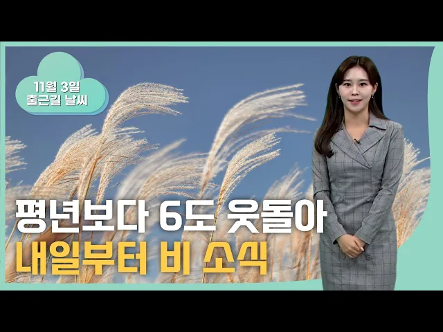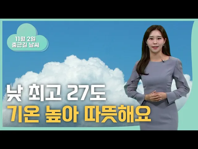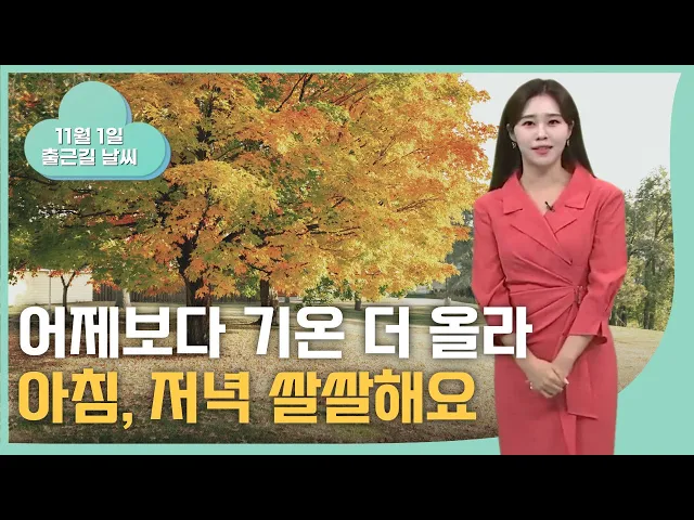 [어제보다 낮 기온 더 올라.. 아침, 저녁은 쌀쌀해]어느덧 11월입니다.가을은 끝자락을 향해가는데, 아직도 10월 초순만큼 포근한 날씨를 보이고 있습니다.특히 오늘 우리 지역은 낮 기온이 24도까지 올라서 평년보다 6도가량 웃돌겠습니다.다만, 아침저녁으론 공기가 차가우니까요.건강 잃지 않도록 컨디션 관리 잘 해주셔...