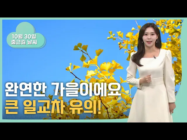 [완연한 가을 날씨.. 큰 일교차 유의]요즘은 그야말로 '완연한 가을'입니다.거리 곳곳에서 곱게 물든 단풍도 보이고요.맑은 하늘 아래 가을볕이 기온을 끌어올리면서, 낮 동안에는 포근합니다.오늘도 일교차 대비만 잘 해주신다면 바깥활동하기 좋겠습니다.오늘 아침 기온 8.9로 출발해서 제법 쌀쌀하지만요.낮 기온은 22도...