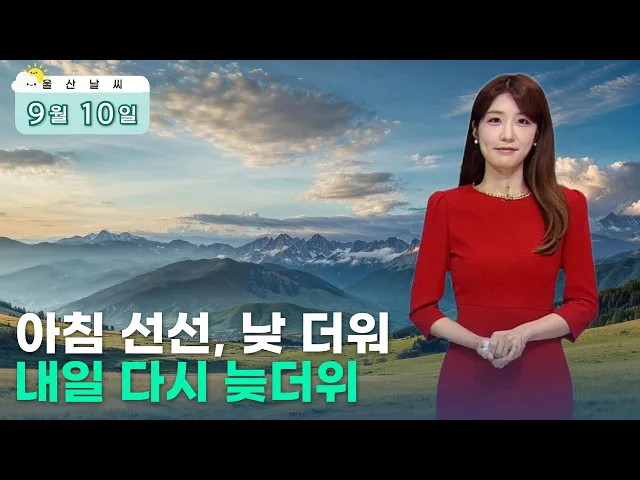 9월 중순 들어서면서, 피부에 닿는 공기가 가을이 왔음을 실감하게 합니다. 오늘 아침 최저기온도 22도로 비교적 선선하게 출발하고 있는데요.다만 낮부터는 30도 안팎까지 오르며 늦더위가 다시 기승울 부리겠습니다. 특히 경남내륙지역을 중심으로는 일교차가 10도 이상으로 크게 벌어지니까요. 환절기 건강 잘 챙겨주시...