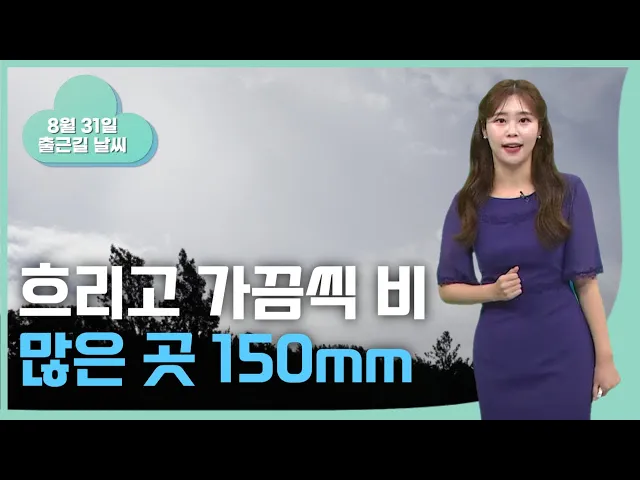 [흐린 하늘 속 가끔 비.. 많은 곳 150mm ↑] 출근하실 때 비가 내리지 않더라도 우산 챙겨 나오셔야겠습니다. 8월의 마지막 날인 오늘도 계속해서 비 소식이 있는데요. 오다 그치기를 반복하겠고, 비의 강도 역시 들쑥날쑥하겠습니다. 내일까지 50에서 100mm의 비가 내릴 것으로 예상되고요. 많은 곳은 150mm를 넘어서겠습니...