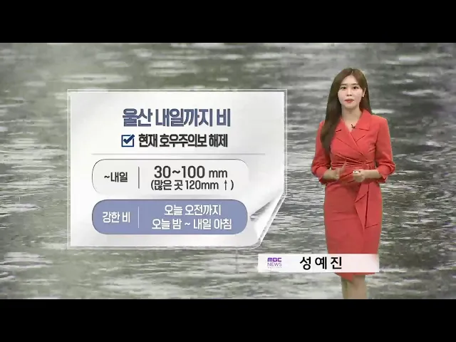 [울산 내일까지 비.. 최대 120mm↑] 밤사이 많은 양의 비가 내렸습니다. 곳곳으로는 시간당 30mm가 넘는 강한 비가 쏟아지기도 했는데요. 비는 내일까지 오다 그치기를 반복하겠습니다. 특히 오늘 오전까지, 또 오늘 밤부터 내일 아침까지 어젯밤과 비슷한 강도의 강한 비가 내릴 수 있어 주의가 필요합니다. 내일까지 예상...