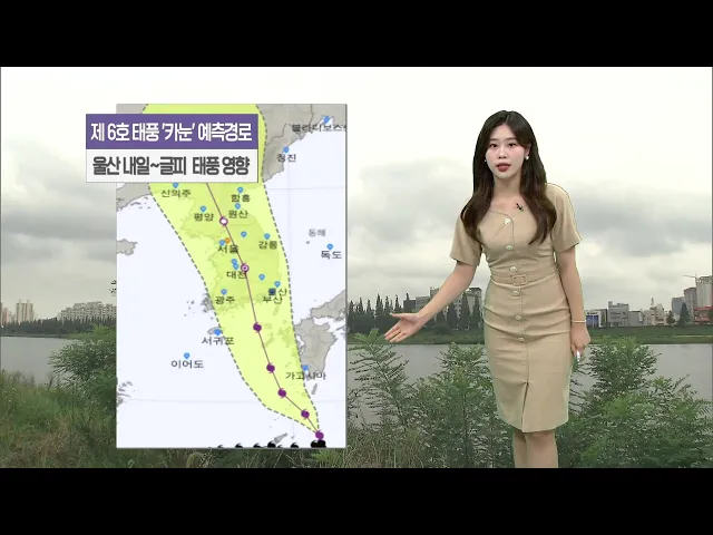 태풍'카눈'북상.. 울산 오늘~내일 강한 비바람 [울산 날씨 (8.9)] 제6호 태풍 카눈이 점차 북상하고 있습니다. 따라서 울산도 오늘부터 내일까지 태풍의 영향을 받겠는데요. 오늘 오전부터 비가 시작되겠고요. 시간당 40~60mm로 매우 강한 비가 오는 곳이 있겠습니다. 울산에는 현재 강풍주의보가 발효됐고요. 호우 예비특...