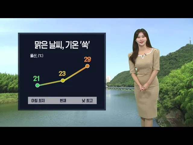 [오늘도 맑은 날씨..주말동안 한때 비] 중복인 오늘도 맑은 날씨가 이어집니다. 하늘에 구름만 가끔 지나서, 볕이 기온을 빠르게 끌어올리겠는데요. 아침 최저기온 21도로 시작한 울산은 현재 23도까지 올라와 있고요. 낮 기온 29도가 예상됩니다. 주말부턴 다시 하늘이 흐려지겠고 한때 비도 내리겠습니다. 울산은 토요일 ...