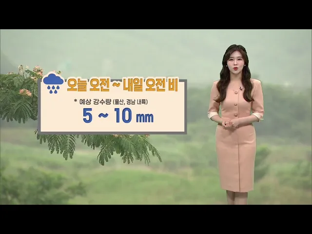 [여름 더위 누그러져.. 오늘 최대 10mm 비] 오늘 나오실 때 우산 하나 챙기시기 바랍니다. 현재 경남서부지역을 중심으로는 약한 비가 내리고 있는데요. 오전 중에 차차 울산으로도 확대되겠고, 내일 오전이면 대부분 그치겠습니다. 예상되는 비의 양은 5~10mm 정도입니다. 어제는 올 들어 가장 높은 기온(30.7)을 기록했는...