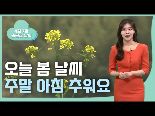 [쌀쌀한 출근길.. 짙은 안개 주의] 요즘 날씨가 참 변덕스럽죠. 주말 사이 요란한 비가 지나고, 오늘 아침은 기온이 낮아져 쌀쌀하겠습니다. 현재 기온 7도를 보이고 있고요. 낮에는 기온이 20도까지 오르면서 일교차가 10도 이상 벌어지겠습니다. 나오실 때 두꺼운 외투 챙겨 나오시기 바랍니다. 오늘 출근길에는 황사와 ...