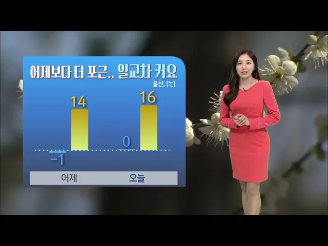 [낮 최고 12도, 온화해요... 미세먼지 '보통'] 아침 공기가 다소 부드러워졌습니다. 어제 아침 영하권 추위가 나타났는데 현재 아침 기온은 5도로 포근하게 출발하고 있습니다. 낮 기온도 크게 올라 12도로 예상되면서 어제보다도 더 온화해진 날씨를 느낄 수 있겠습니다. 오늘 울산지역 미세먼지 농도는 '보통' 수준으로 ...