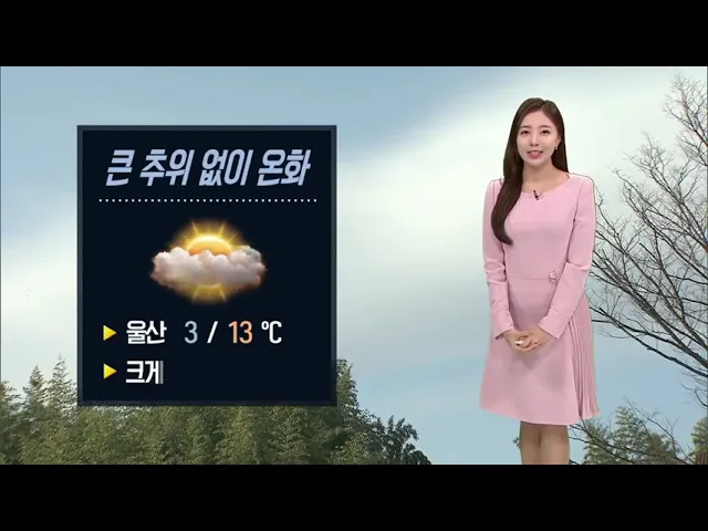 [큰 추위 없이 온화... 대기 건조해 화재 조심] 오늘도 낮 동안에는 큰 추위 없이 비교적 온화하겠습니다. 현재 출근길 기온은 3도를 기록하고 있고요. 한낮에는 13도까지 기온이 올라 어제보다도 온화하겠습니다. 다만 일교차가 10도로 크게 벌어지는 만큼 감기 조심하시기 바랍니다. 현재 울산에는 건조주의보가 발효 중...