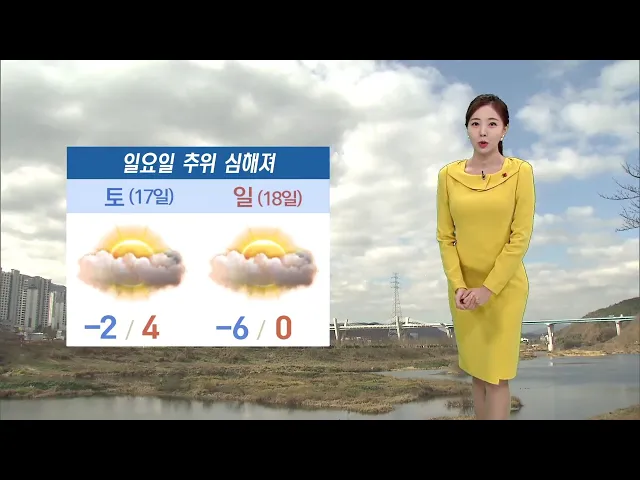 [아침 기온 영상권 출발... 일요일 추위 심해져] 금요일 아침 기온은 영상권으로 시작합니다. 현재 기온 2도를 보이고 있고요. 한낮에는 5도에 머물면서 어제 낮보다 기온이 낮아 춥겠습니다. 울산에 건조주의보가 발효 중인 만큼 화재예방에 유의하시기 바랍니다. 주말에도 추위는 이어집니다. 내일은 오늘과 비슷한 추위...