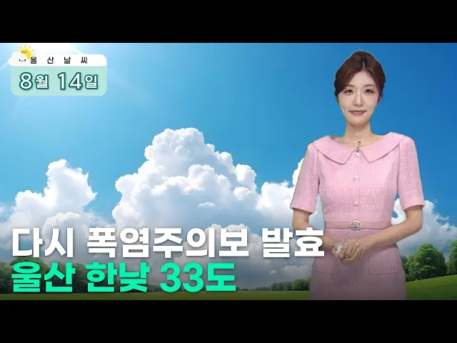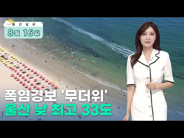 울산 전역에 어제 폭염주의보가 내려진 가운데 울산 서부지역은 오전 11시를 기해 주의보가 경보로 격상됐습니다. 폭염특보 속에 울산은 오늘도 낮 최고기온이 33.6도까지 오르며 무더운 날씨를 보였습니다. 광복절인 내일도 24도에서 33도의 기온 분포로 덥겠고, 주말과 휴일에는 낮 기온이 35도까지 오를 것으로 전망됩니...