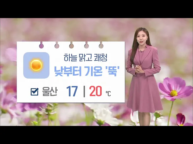 [아침 빗방울, 오후에는 맑아... 오전까지 강풍] 가을색이 짙어지는 만큼 날이 더 차가워지고 있습니다. 오늘 울산은 높고 파란 가을 하늘이 예상되는데요. 동풍의 영향으로 아침까지 0.1mm 미만의 빗방울이 떨어지는 곳이 있겠습니다. 오전까지 바람은 강하겠습니다. 울산에는 순간풍속 55km/h(15m/s) 안팎의 바람이 강하...