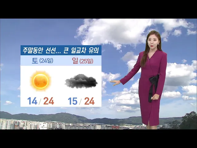 [낮 최고 24도 평년 기온 회복해 선선... 자외선 '높음'] 높고 파란 하늘에 선선하게 불어오는 바람이 가을을 느끼게 합니다. 오늘 하늘에는 구름이 가끔 지나면서 기온은 선선하겠지만 일교차가 크게 벌어지겠습니다. 현재 아침 기온은 14도로 쌀쌀하고요. 한낮에는 24도까지 기온이 올라 평년 수준을 회복하겠습니다. 기...